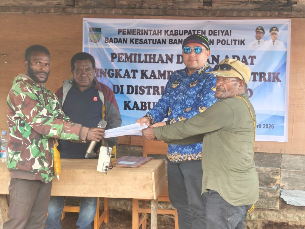 Deiyai, WAGHETE — Badan Kesatuan Bangsa dan Politik (Kesbangpol) Kabupaten Deiyai melaksanakan kegiatan monitoring dan pengawasan terhadap proses pemilihan Kepala Suku Mee tingkat Kampung dan Distrik se-wilayah Kabupaten Deiyai.
