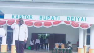 Deiyai, WAGHETE – Bupati Kabupaten Deiyai, Melkianus Mote melakukan apel bersama dengan seluruh Calon Pegawai Negeri Sipil (CPNS) Formasi 2024, Tenaga Honorer Kategori II dan Pegawai Pemerintah dengan Perjanjian Kontrak (PPPK) di Halaman Kantor Bupati Deiyai, Rabu (08/04) pagi